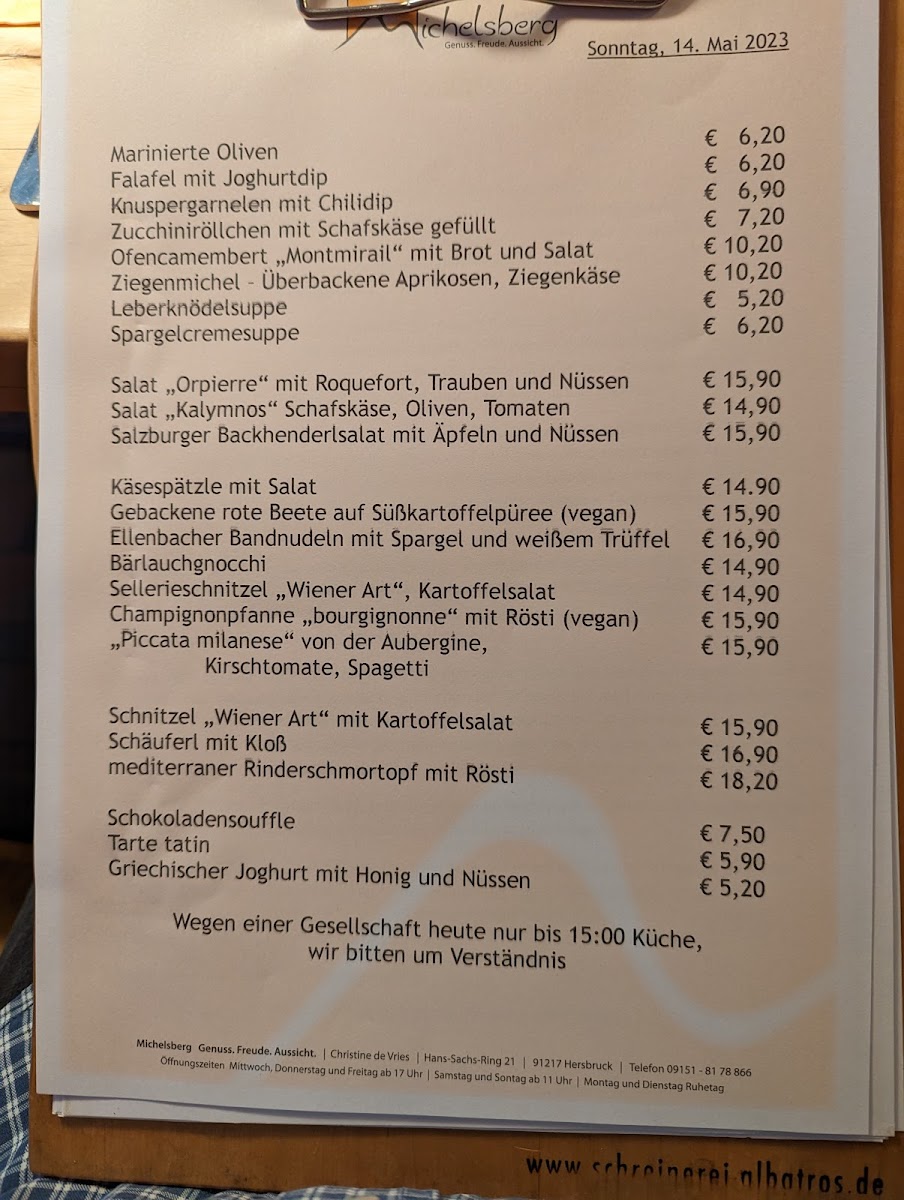 Beyond the food, the restaurant's welcoming vibe and attentive service make it an ideal spot for social gatherings or a peaceful dining experience. With its breathtaking views and proximity to scenic hiking trails, Restaurant Michelsberg not only satisfies your palate but enriches your overall dining experience.