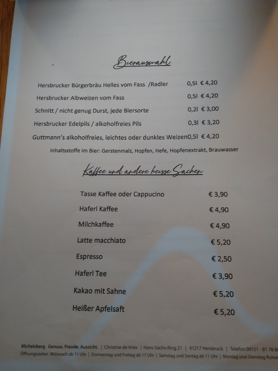 Welcome to Restaurant Michelsberg, a culinary gem nestled in the serene surroundings of Hersbruck, Germany. Located at Hans-Sachs-Ring 21, this haven offers stunning views and a warm atmosphere that resonates with both locals and visitors.